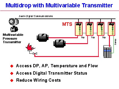 Because of its high input impedance, several MTS modules may be multidropped on a single transmitter with