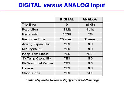 Its digital input is able to accept multivariable transmitters and is user configurable to trip on any one of the